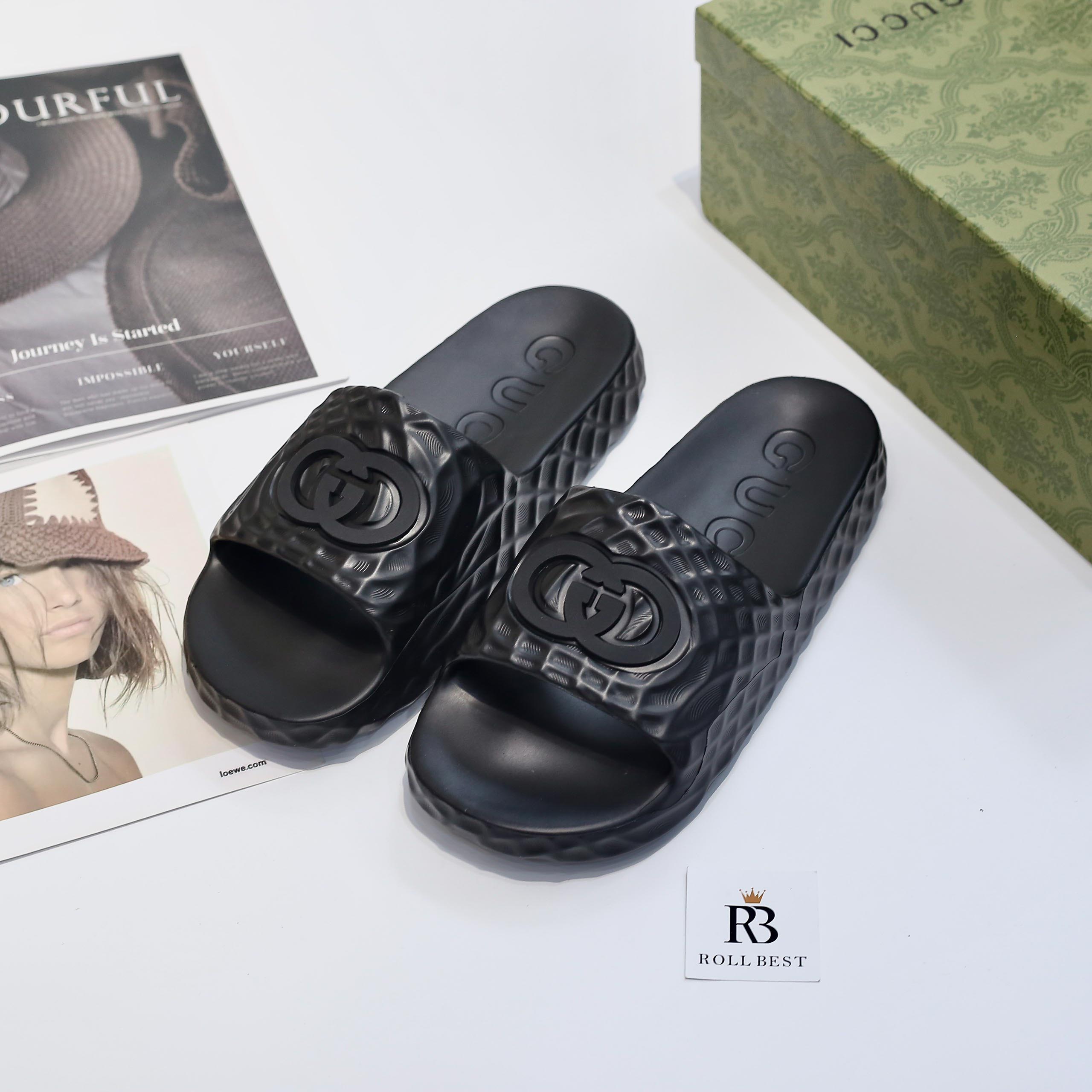 Dép Gucci Interlocking G Slide Sandal Black Like Auth