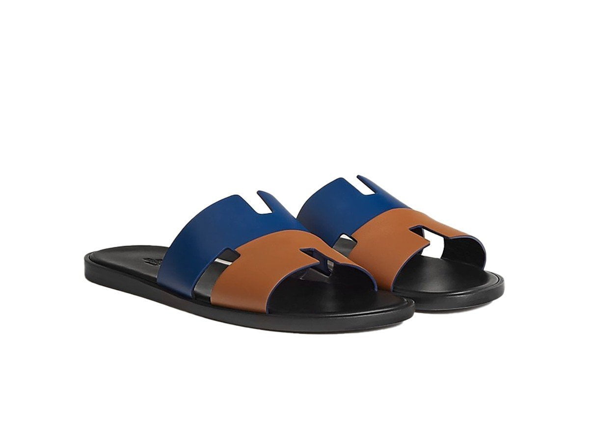 Dép Hermes Bleu Outremer / Naturel Da Trơn Best Quality