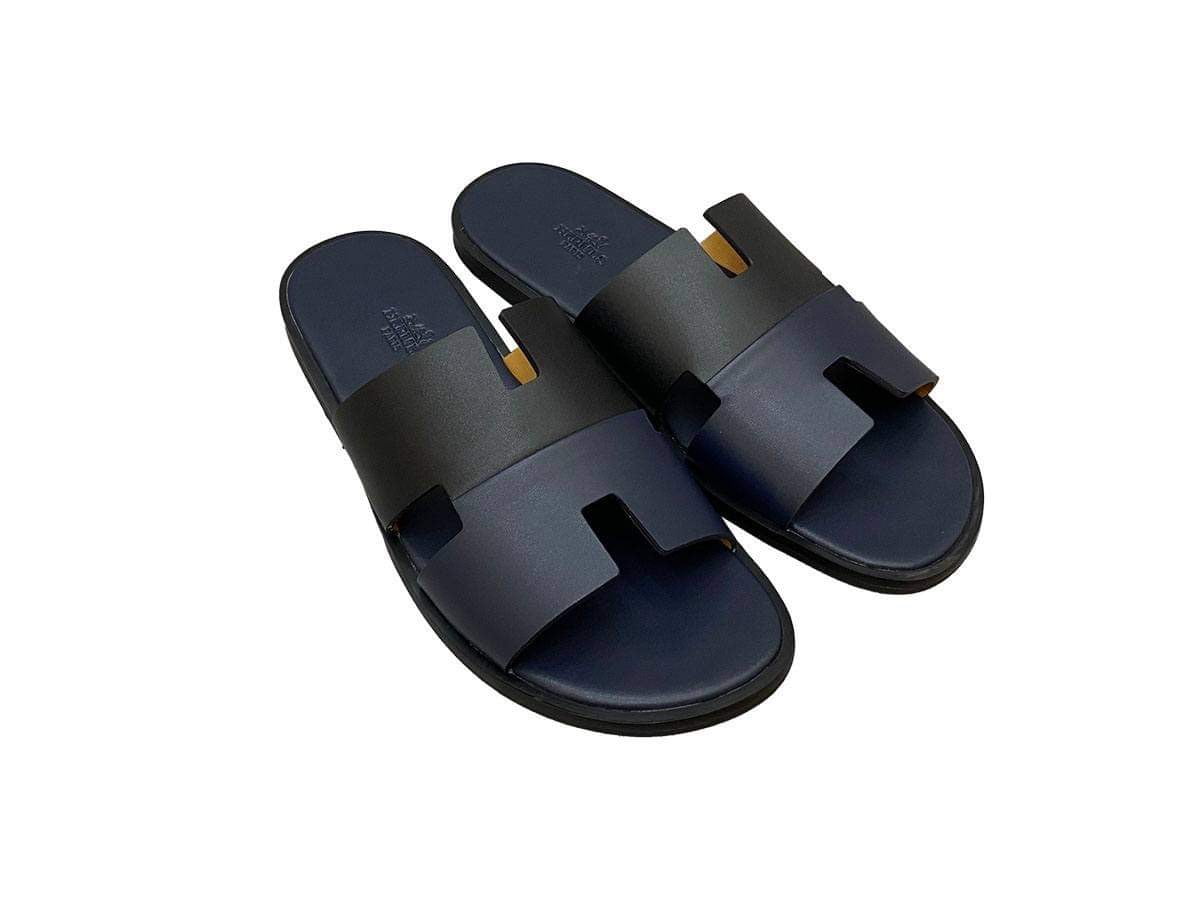 Dép Hermes Nam da Trơn 2 Màu (Bicolor) Xanh Đen