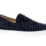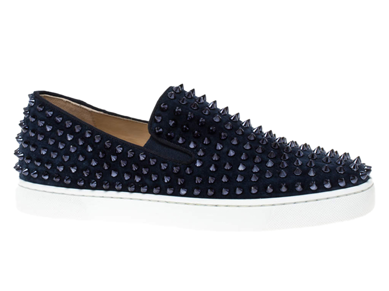 Giày Christian Louboutin Navy Suede Roller Boat Spiked Slip On Best Quality