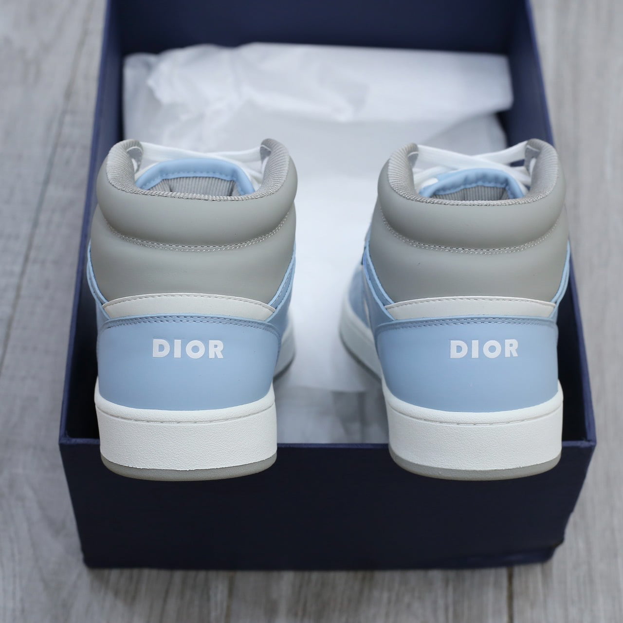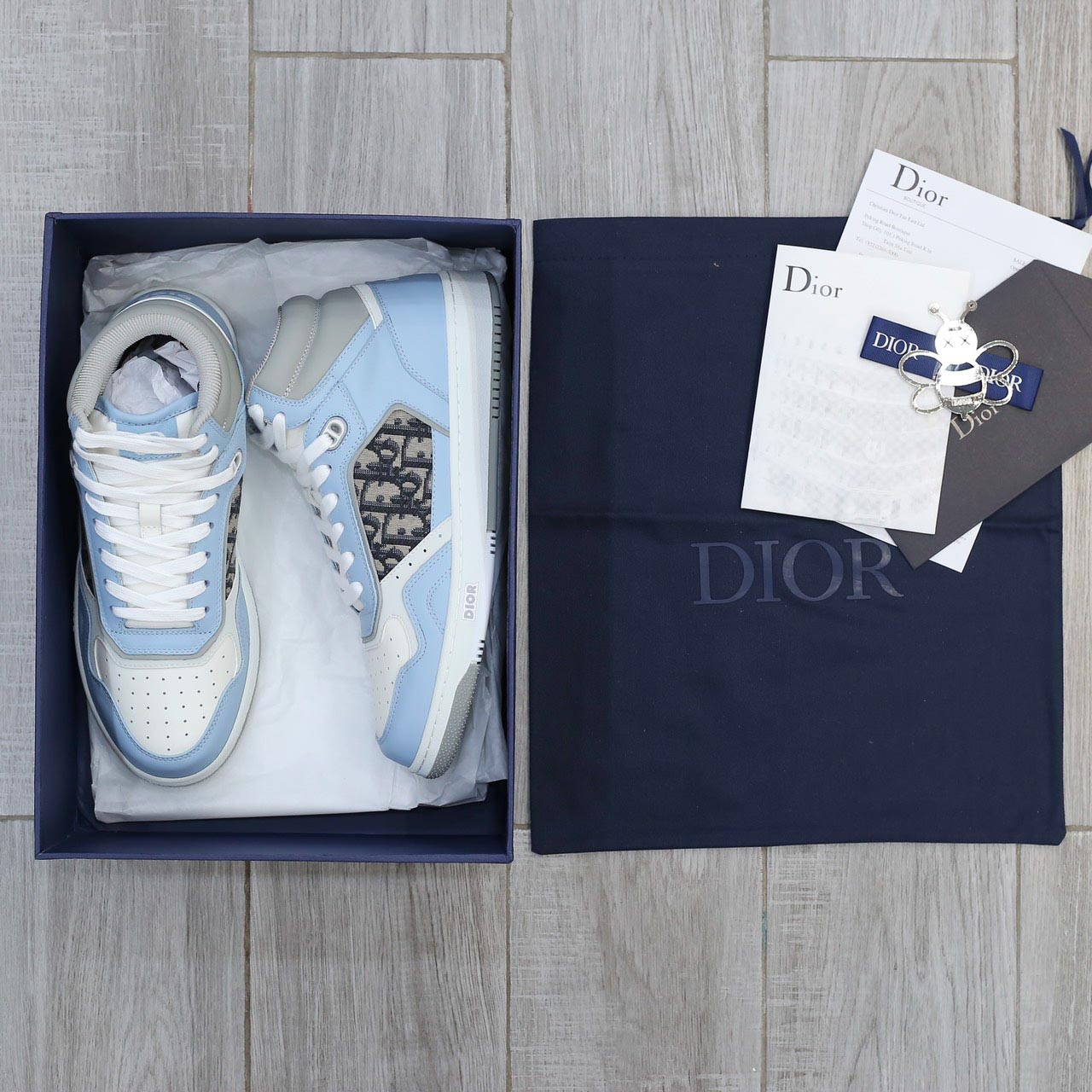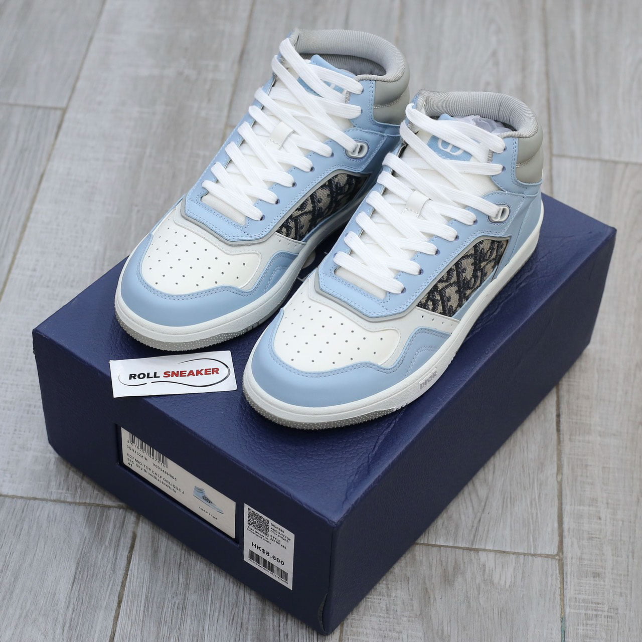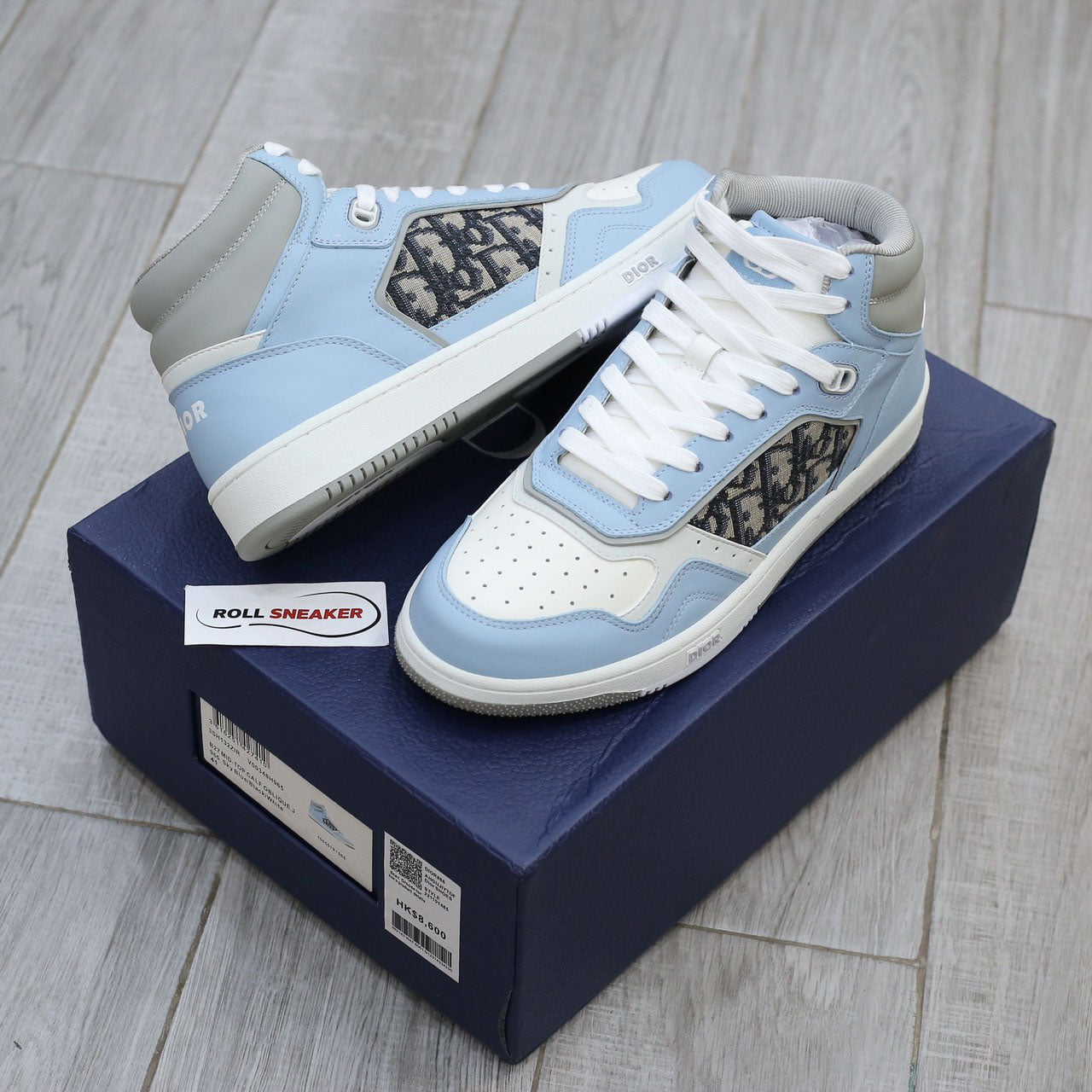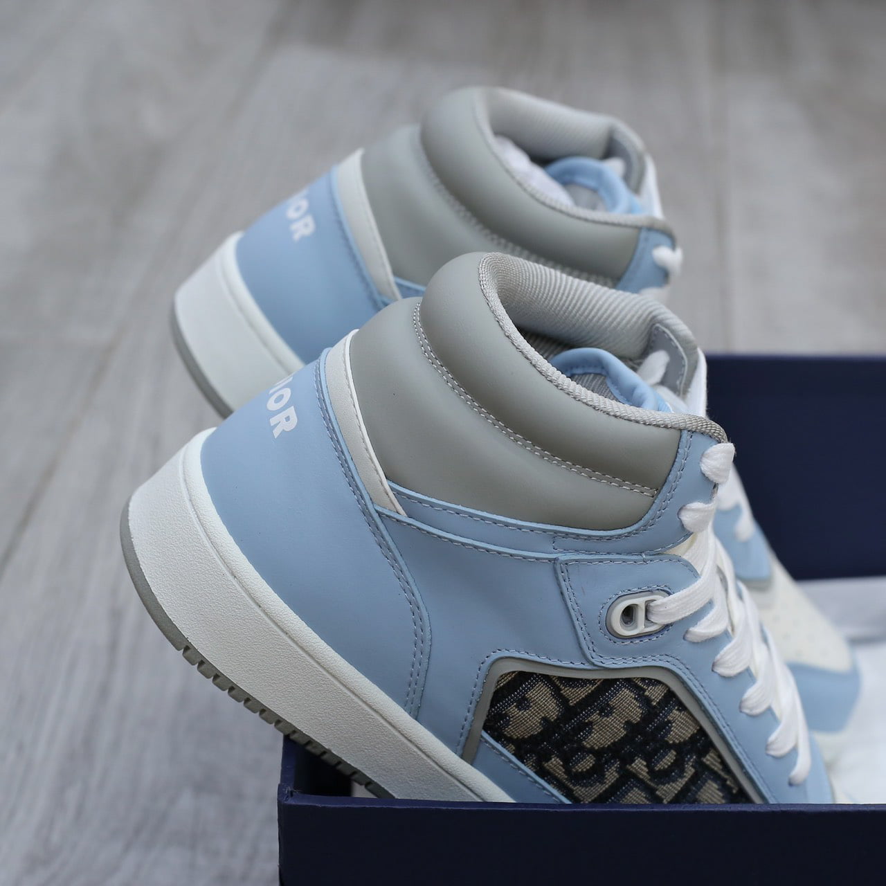 Giày Dior B27 High Light Blue and White Gray họa tiết vải Dior Oblique Jacquard Like Auth