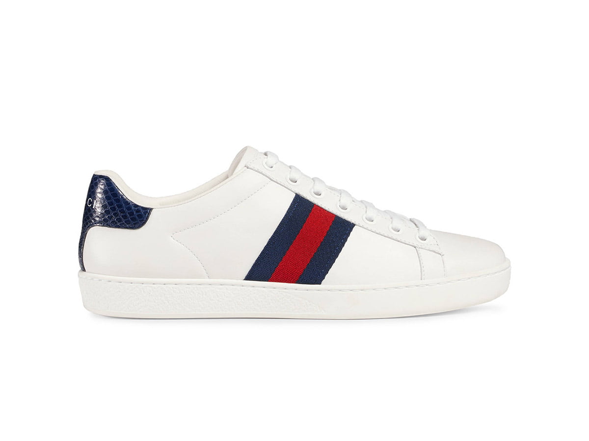Giày Gucci Ace White Blue Red với chất liệu là da bê cao cấp có tone màu trắng chủ đạo vô cùng quý phái và sang trọng. Điểm nhấn của sản phẩm này là thiết kế với hoa văn được kẻ sọc màu xanh dương và đỏ ở hai bên giày tạo nên đặc trưng riêng của thương hiệu. Về phần gót giày cũng được làm màu xanh với da rắn cùng logo Gucci gây ấn tượng cho người nhìn.