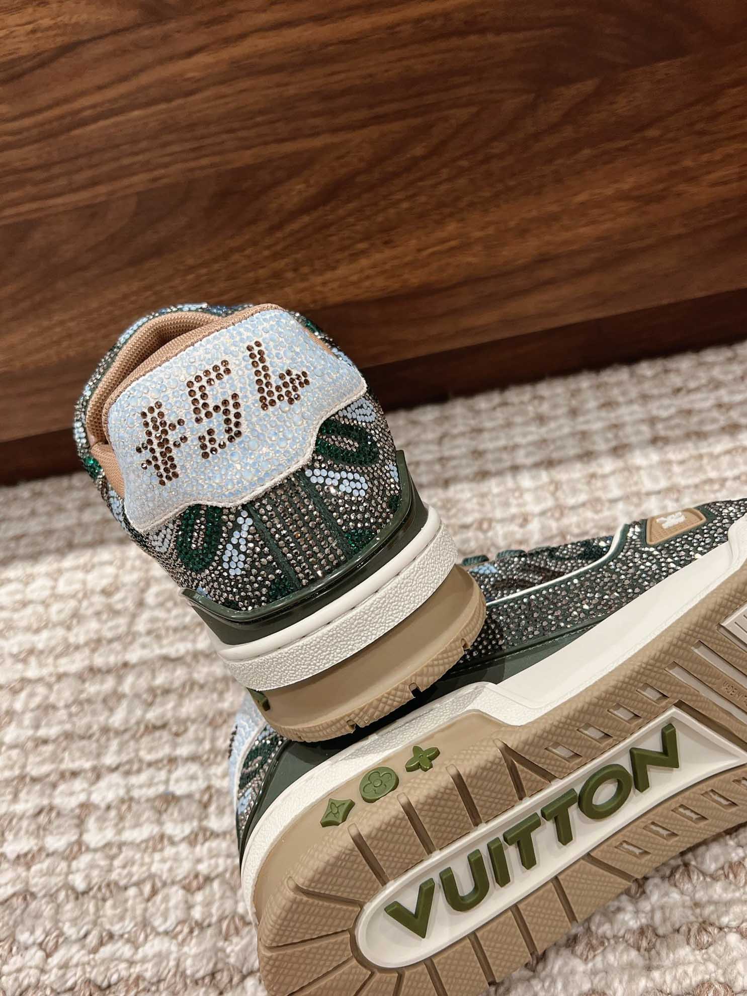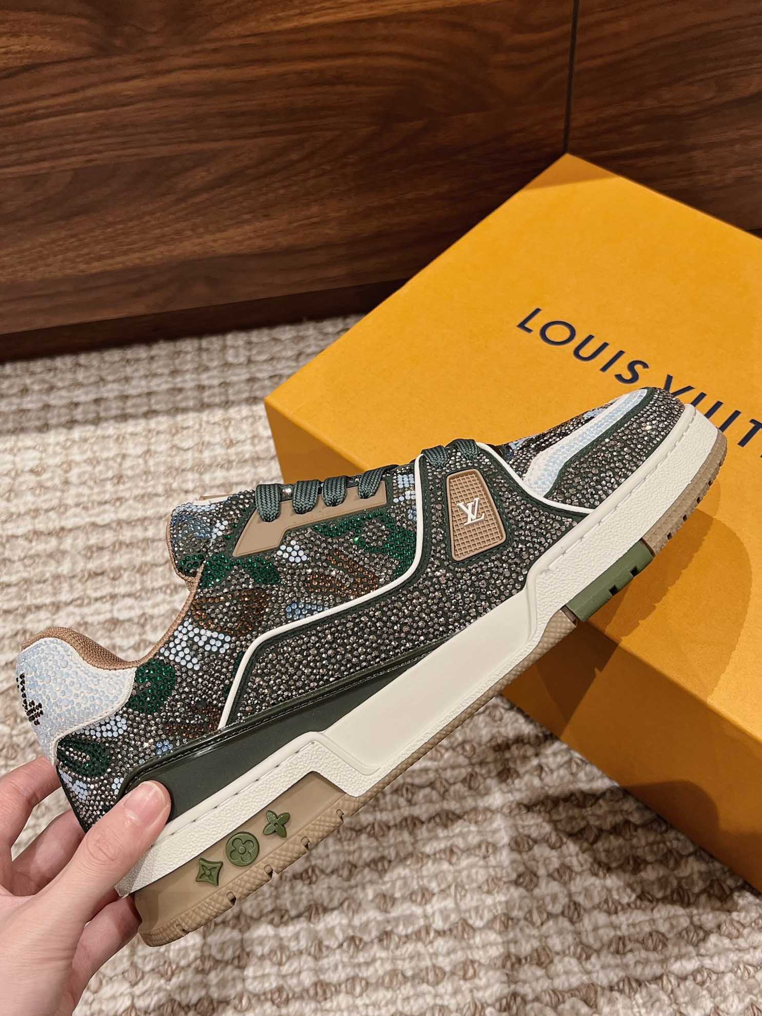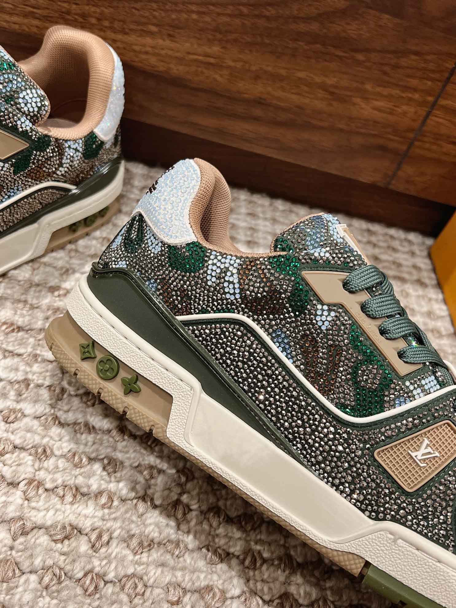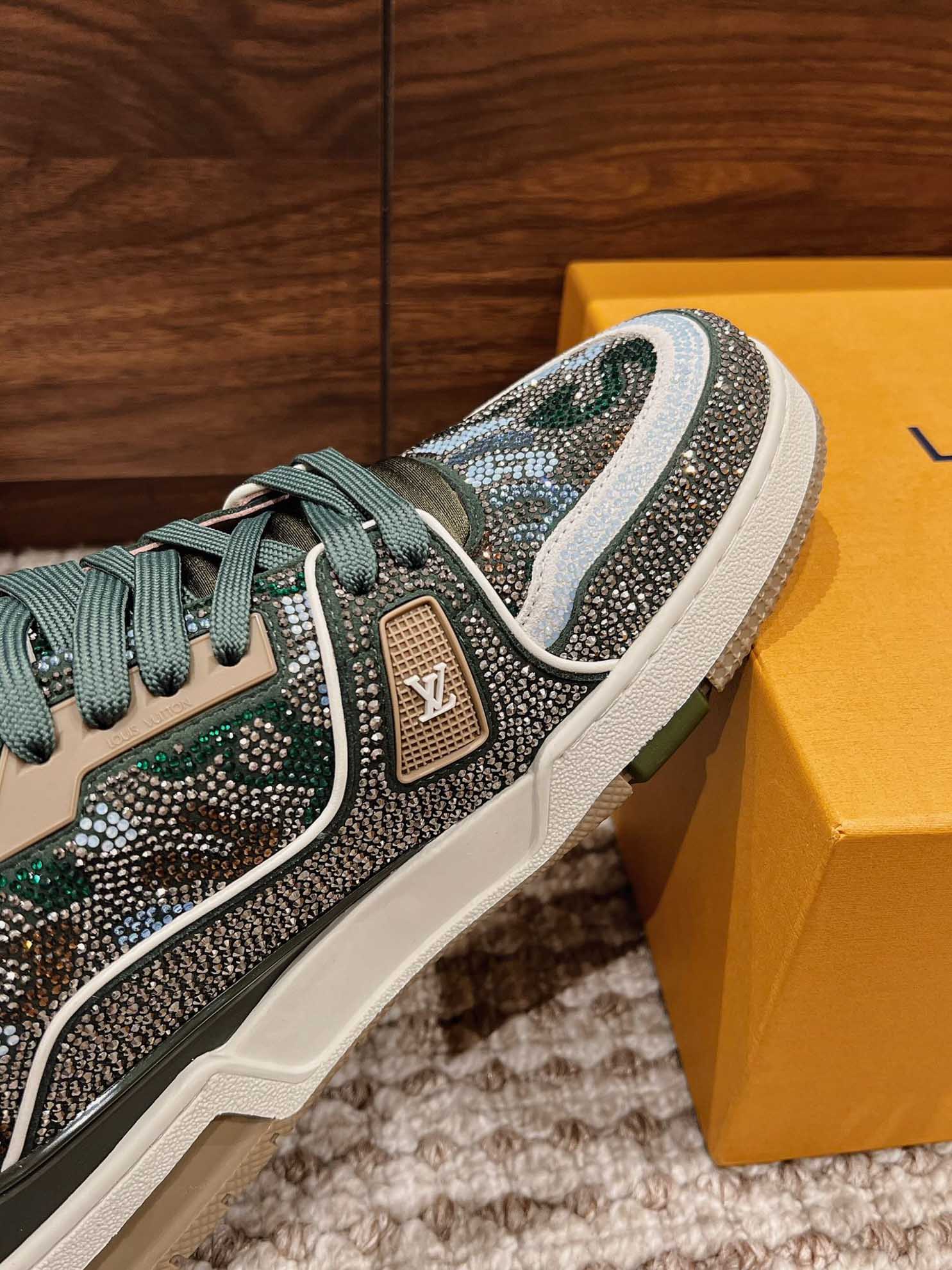 Giày Louis Vuitton Lv Trainer #54 Khaki Green Strass