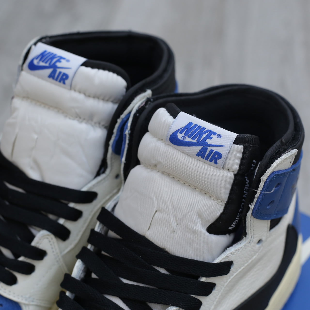 Phần cổ giày mang nét thiết kế đặc trưng của thương hiệu Travis với sự hiện diện đầy đủ của logo thương hiệu của cả ba nhãn hàng trên lưỡi gà. Trong khi đó, biểu tượng Air Wings được dập chìm nổi bật ở cả hai bên.